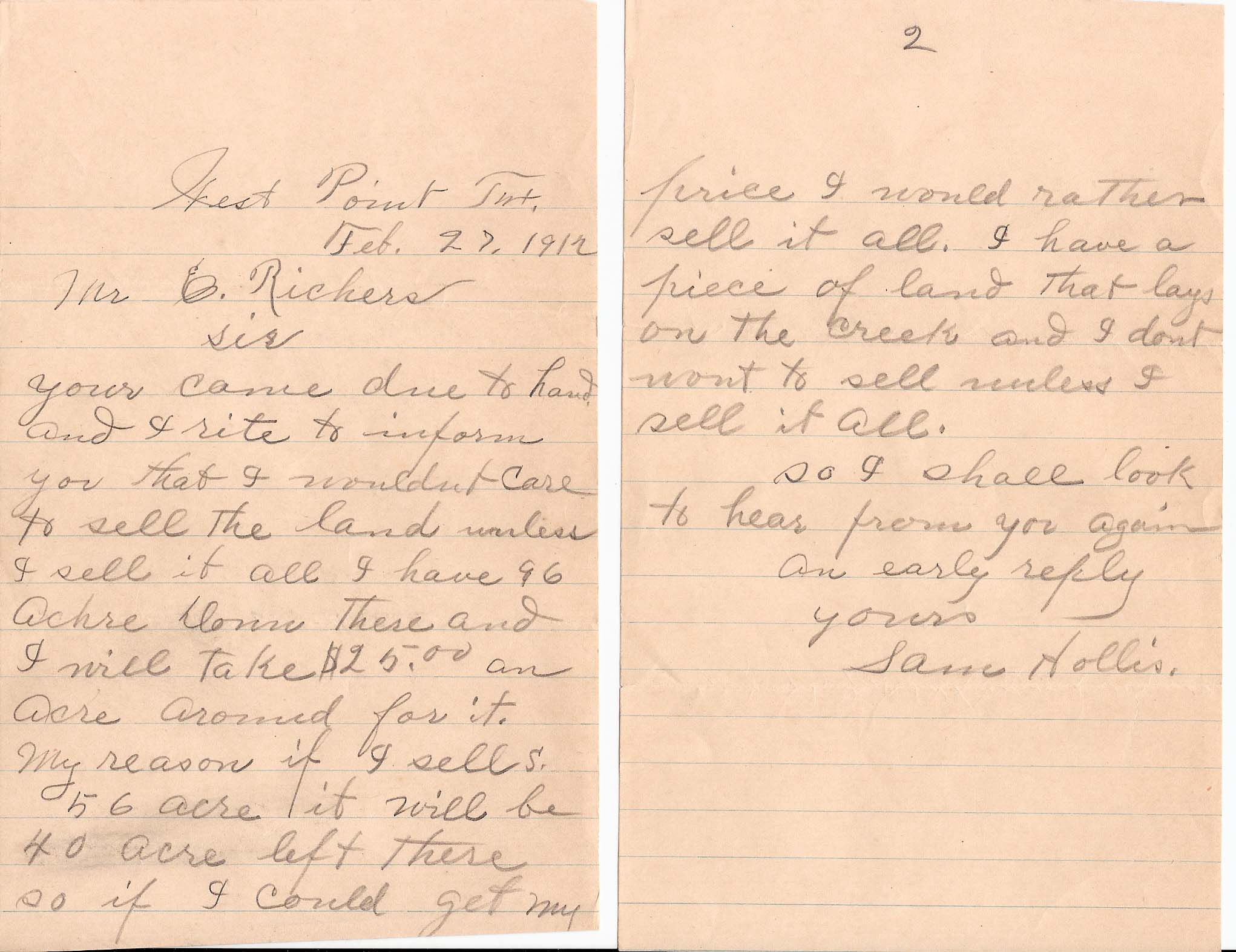 S.HollisToE.RichersLetter1912